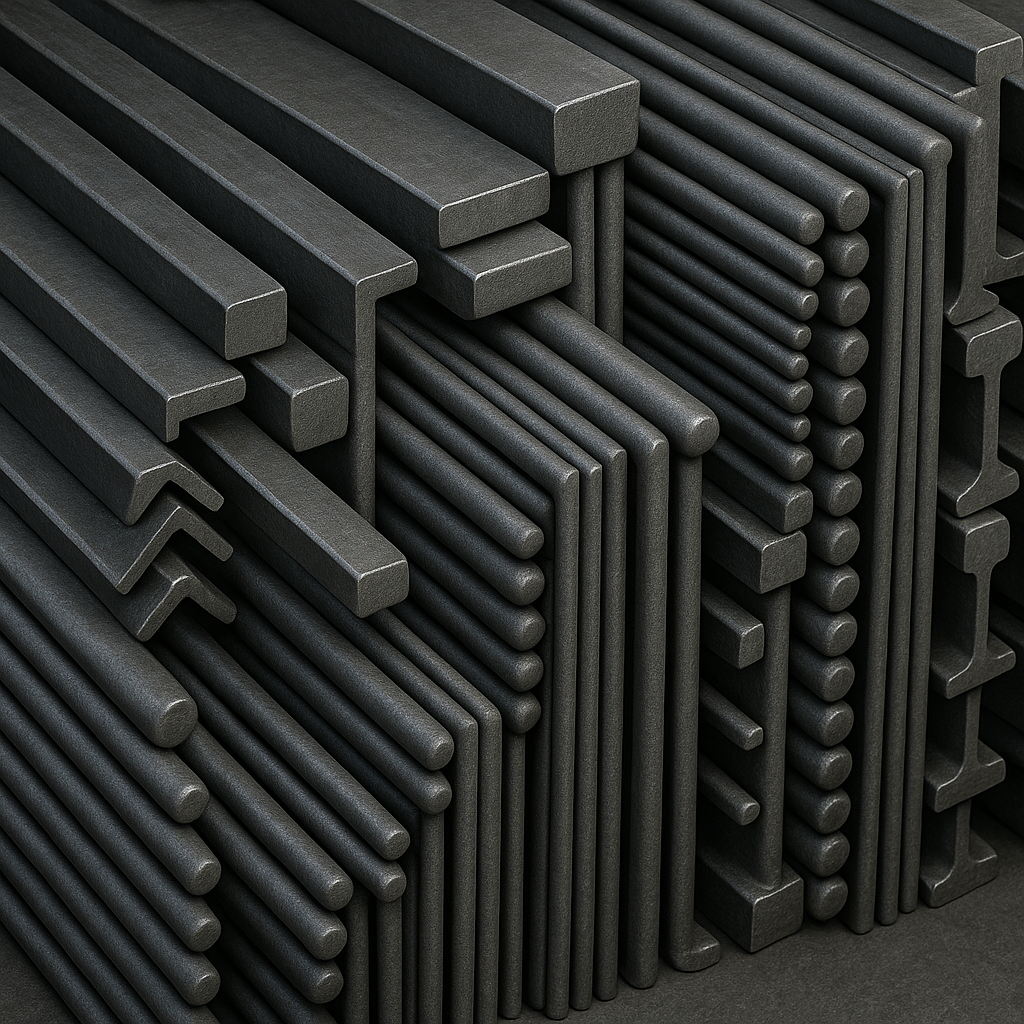 Διαθέτουμε όλα τα προϊόντα σιδήρου εμπορίου, όπως Γωνίες Ισοσκελείς, Γωνίες Ανισοσκελείς, Λάμες, Δοκούς Τ, Τετράγωνα, Στρογγυλά, Σιδηροτροχιές.